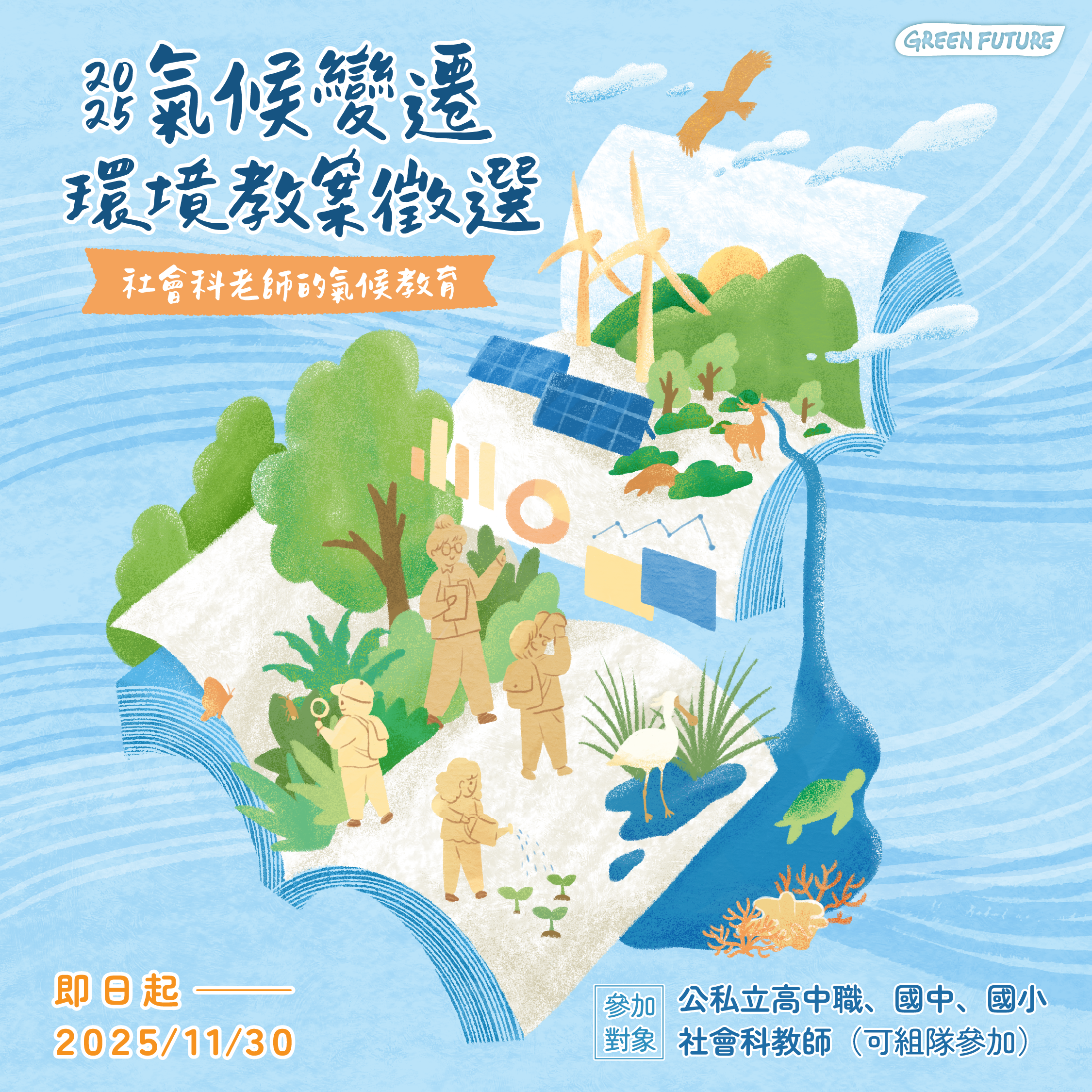 從人權、文化到環境,每個社會議題都與氣候息息相關📚 用一份教案,讓學生理解世界、思考未來綠色和平誠摯邀請「社會科教師」參加教案徵選,成為引導學生思辨與行動的關鍵推手!